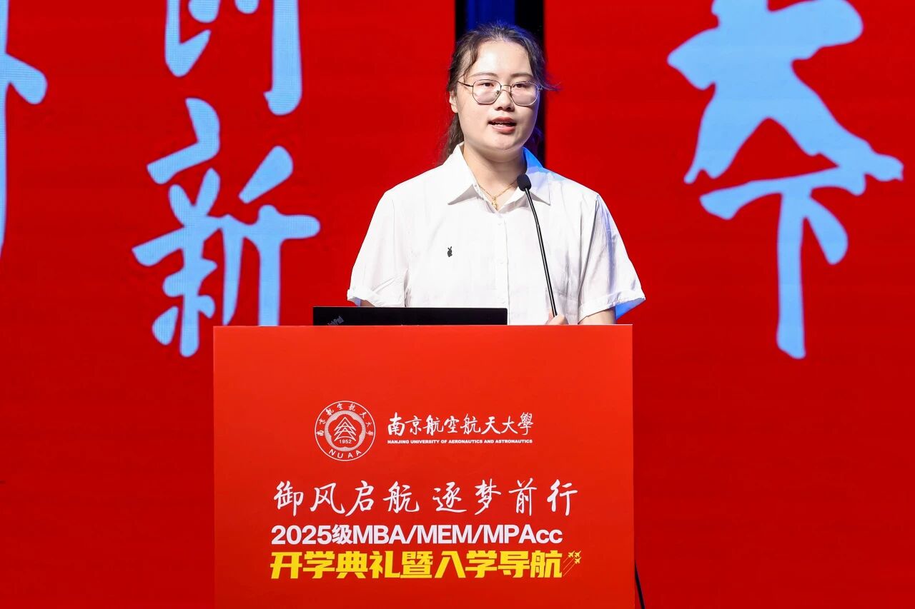 2025级MBA/MEM/MPAcc新生代表尹乐、廖江和柏婷婷表达了对南航精神的理解,对未来学习生活的规划,期待通过研究生学习,成为有思想、有担当、有情怀的经济管理人才,践行南航精神,在未来的事业领域破浪前行。
